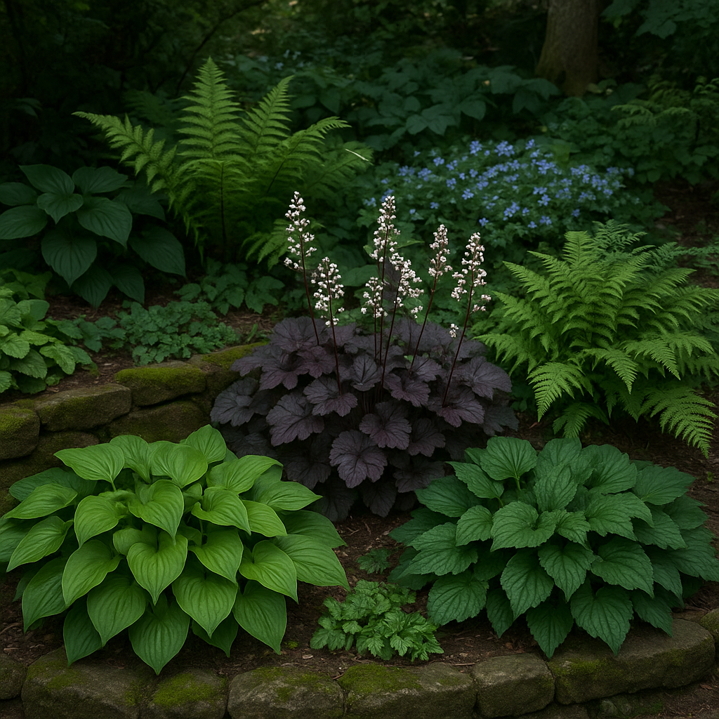 Hosty to prawdziwe królowe cienia – różnorodność odmian umożliwia dostosowanie ich koloru i wielkości do niemal każdego zakątka. Ich ozdobne liście w odcieniach zieleni, kremu i niebieskiego podkreślają aranżację cienistych rabat.