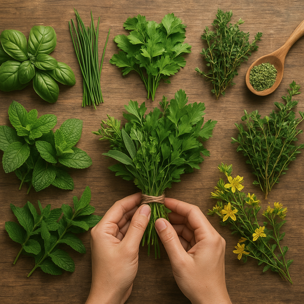 - Świeże zioła, np. koper, pietruszka lub kolendra, wzbogacają sałatki i koktajle.